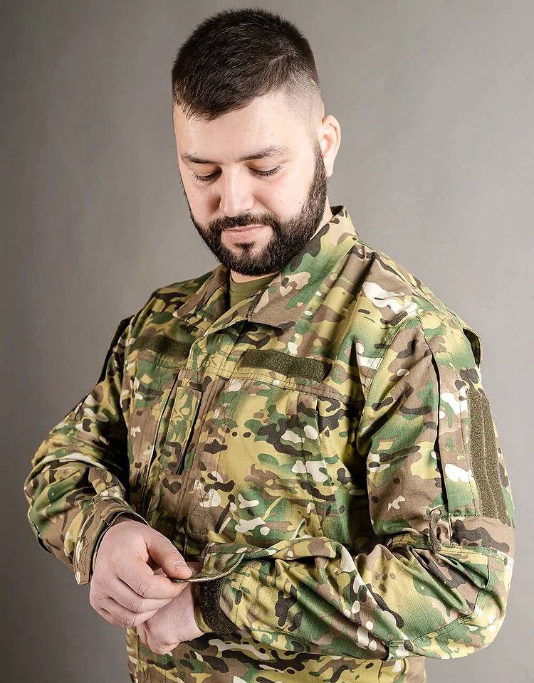На рукавах є липучки для кріплення нашивок і шевронів, під липучкою є кишені. На грудях – кріплення для погона. На нагрудних кишенях розташовані маленькі кишені. Манжет регулюється липучками. Комір-стійка на липучці. Кітель застібається на блискавку та липучку.