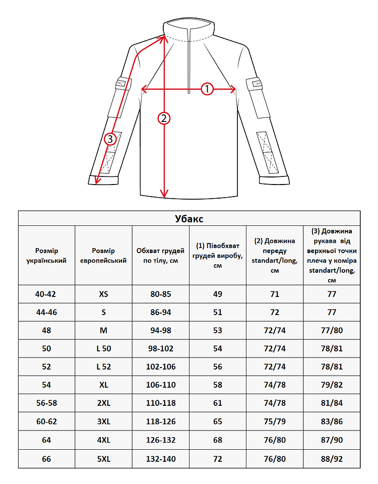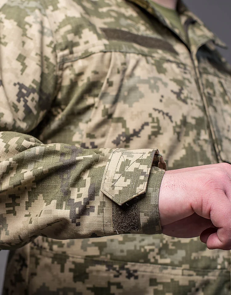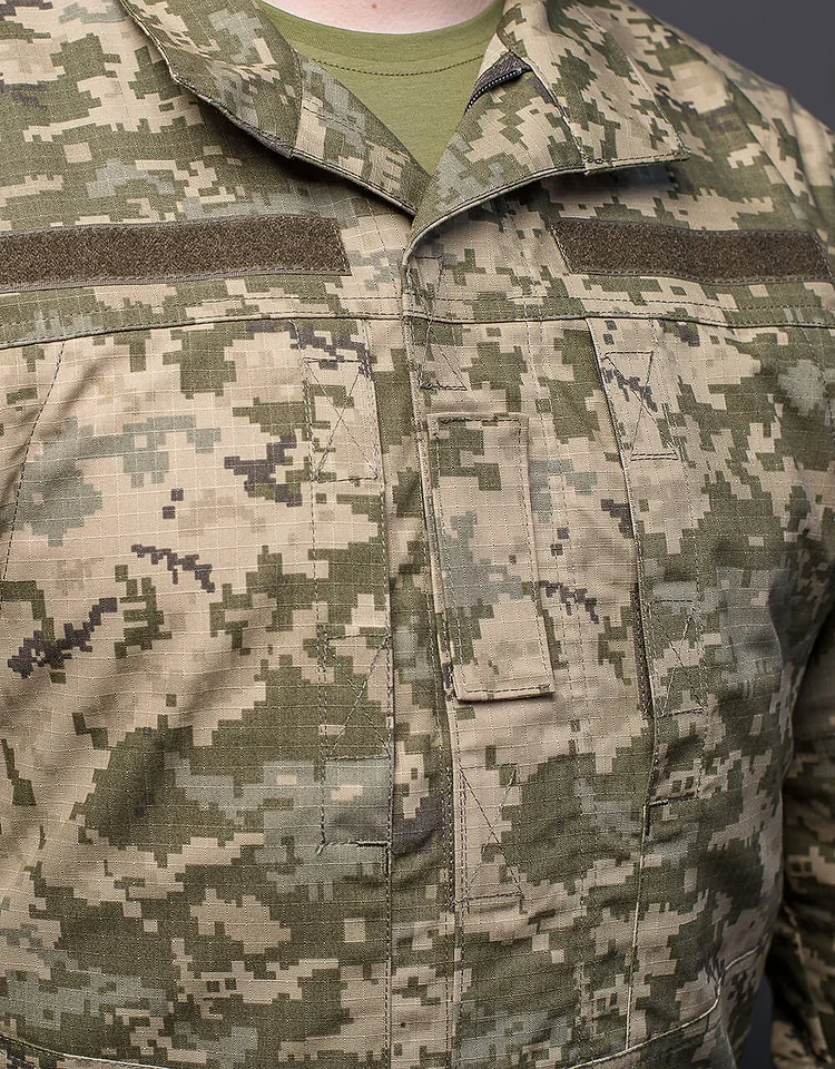 На рукавах є липучки для кріплення нашивок і шевронів, під липучкою є кишені. На грудях – кріплення для погона. На нагрудних кишенях розташовані маленькі кишені. Манжет регулюється липучками. Комір-стійка на липучці. Кітель застібається на блискавку та липучку.
